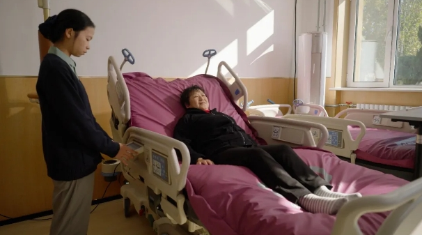 (资料图:财鑫康养综合服务中心内,老人正体验智能护理床)